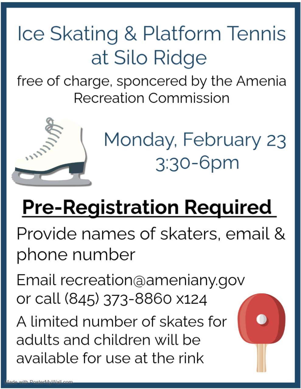 Ice Skating & Platform Tennis February 23, 3:30 - 6:00PM